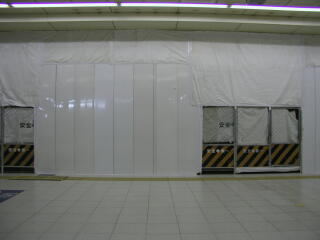 東口切符売り場が閉鎖され、工事の壁で覆われた。 |